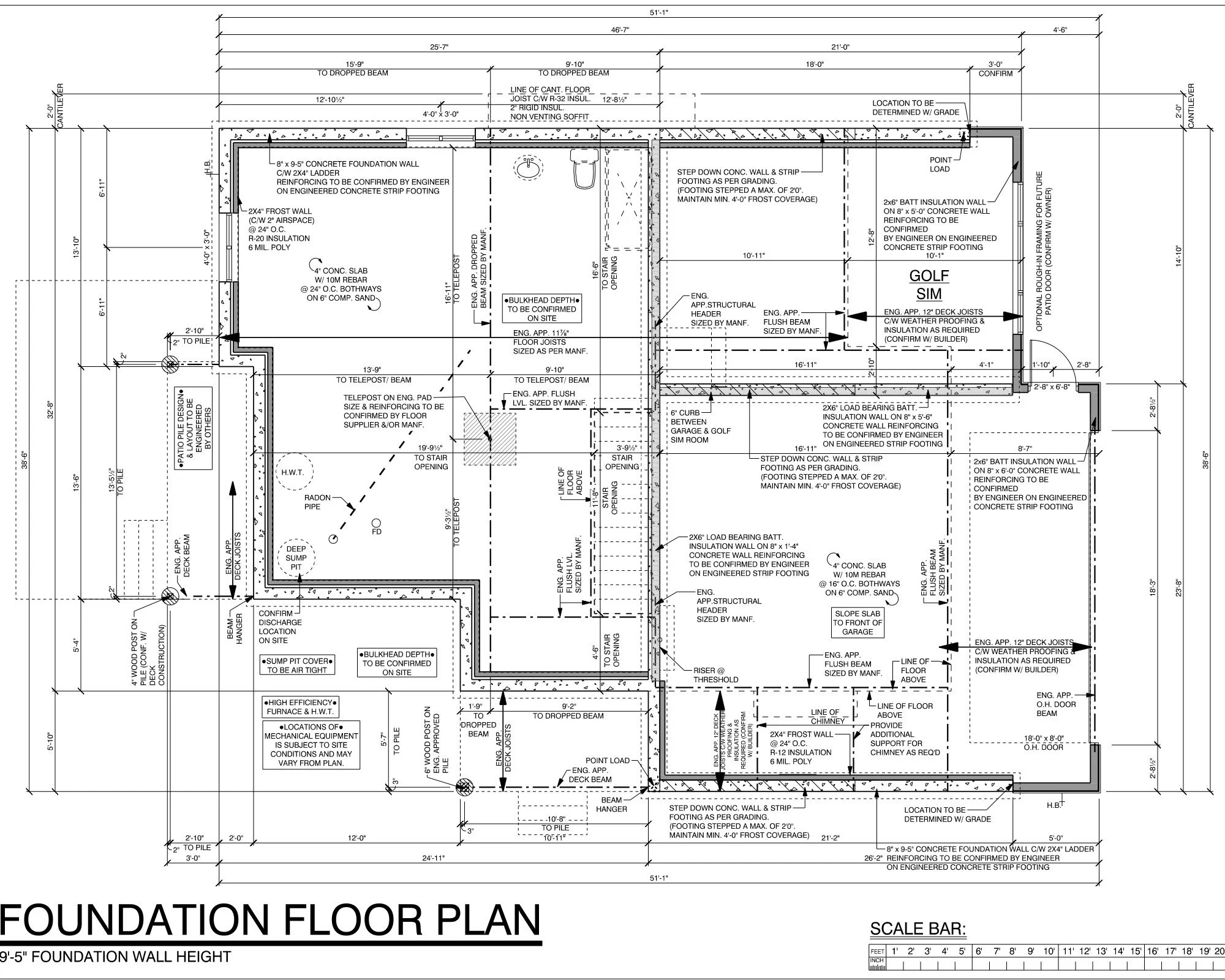 Fully noted and dimensioned floor plans for above grade, basement and foundation plans.